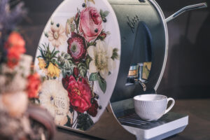 Kicco Flower é uma variante da máquina de café em pastilha Kicco, que se destaca pelas delicadas decorações florais nas estruturas.