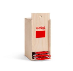 Uma caixa de madeira natural para guardar as suas pastilhas de café.