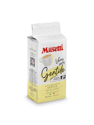 Gentile: mistura de café 100% Arábica, caracterizado por notas aromáticas, frutadas e doces. Com um sabor delicado e levemente ácido, deixa um aftertaste rico e persistente. Para quem procura o melhor de um café com baixíssimo teor de cafeína.